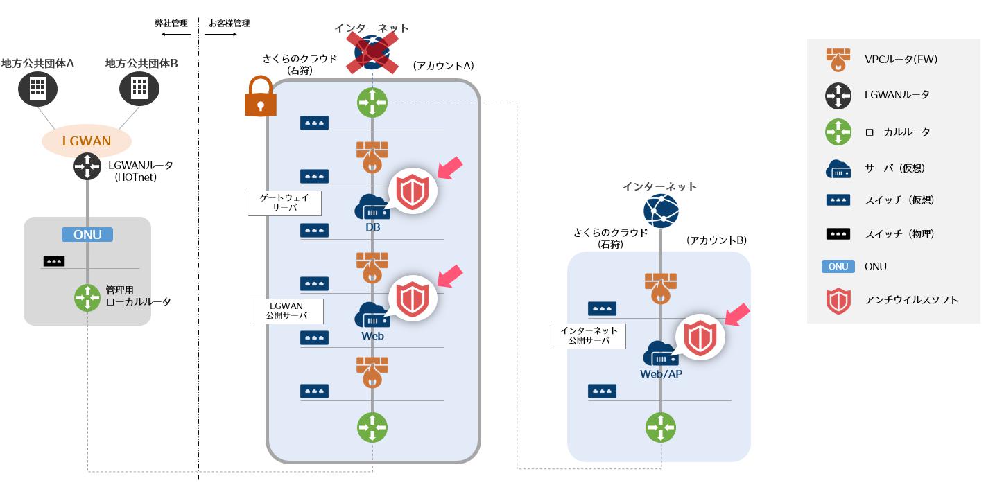 LGWANコネクトとさくらのクラウドを利用した構成例