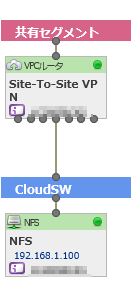今回は、VPCネットワーク内にNFSアプライアンスを1台のみ設置した場合を想定して構築します。NFSアプライアンスはローカルネットワークにのみ接続できるため、スイッチも用意します。