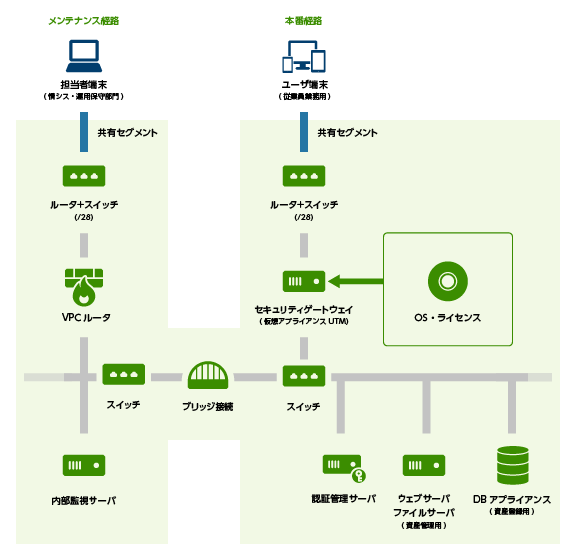 - ウェブ/ファイルサーバーにより資産・業務(CRM、資産、グループウェア、外部連携用PaaSミドルウェア)のサーバーを構築できます。