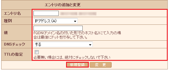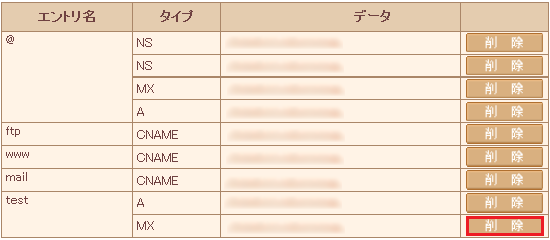 エントリ名「@」値に「NSレコード」を入力し新規登録された場合、個別削除ができず一度設定の全削除をしていただき、改めて個別の設定を登録していただく必要がございますので、決して登録されないようお気をつけください。