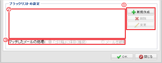 ブラックリストの設定『 (1)新規作成 』のボタンを押します。