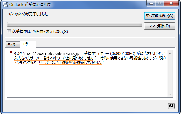 エラー表示例 ( Outlook2016の場合 )