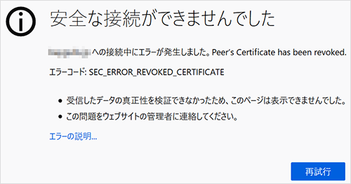 失効状態であるとわかった場合、エラーを表示してWebサイトへのアクセスは行われません。