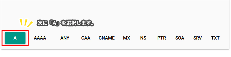 名前に、MXで確認したドメイン名を入れます。画像の赤枠部分、Aの後ろに、ご利用のさくらのレンタルサーバのIPアドレスが表示されているかご確認ください。