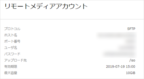 リモートメディアアカウントは有効期限がございます。作成から24時間後に削除されます。