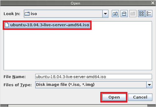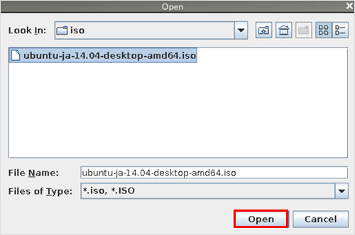 5アップロードしたISOファイルを選択し『Open』をクリックします。