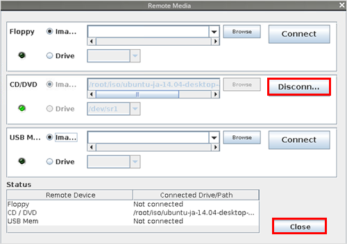 - HTML5/Java版共にコンソールを切断するとISOファイルのマウントが外れる仕様となっております。