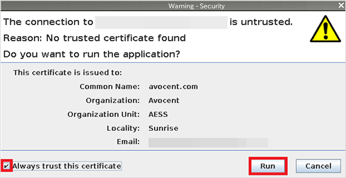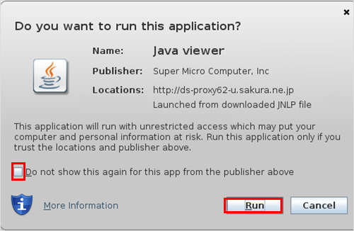 3続いて表示されるダイアログについても、チェックボックスにチェックを入れて『Run』をクリックします。
