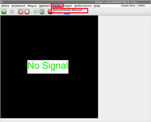 3リモートコンソール画面上部「 Media 」を選択し、『 Virtual Media Wizard… 』をクリックします。