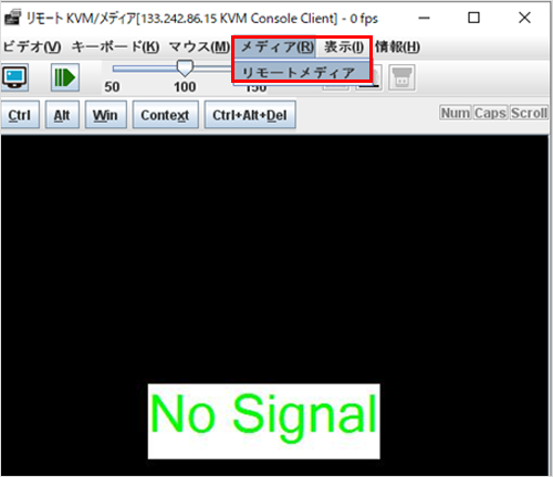 3コンソールメニューの「Media(R)」から『Remote Media』をクリックします。