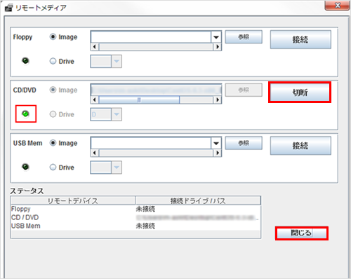仮想メディアを切断する前に、サーバーと共有している仮想メディアデバイスを安全に取り外してください。