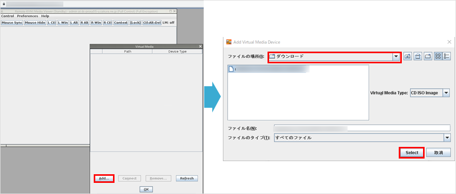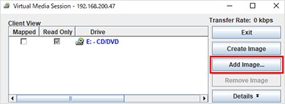 5開かれたVirtual Media Sessionウィンドウから『Add Image』をクリックします