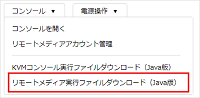 1リモートメディア実行ファイルダウンロード(Java版)をクリックし、リモートメディアのウィンドウを起動します。