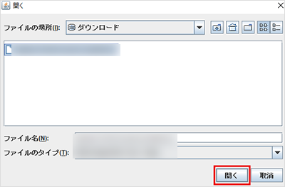 4ファイル選択の画面が表示されますので、マウントする対象のファイルを選択し『開く』をクリックします。