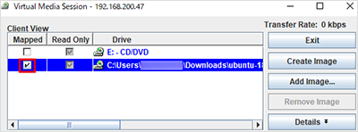 5Virual Media Sessionのウィンドウ内の赤枠をチェックします。