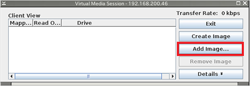 3Virual Media Sessionのウィンドウ内の『Add Image』をクリックします。