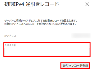 対象サーバーの標準IPアドレスの<逆引きレコード(PTRレコード)を設定する機能です。