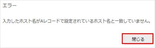エラーが表示された場合は、下記をご確認ください。 ホストの正引きレコードが一致していません