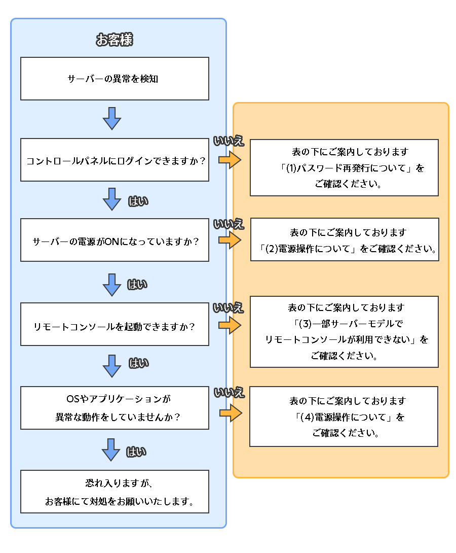 このページでは、お客様がサーバーの動作に異常を感じてから、