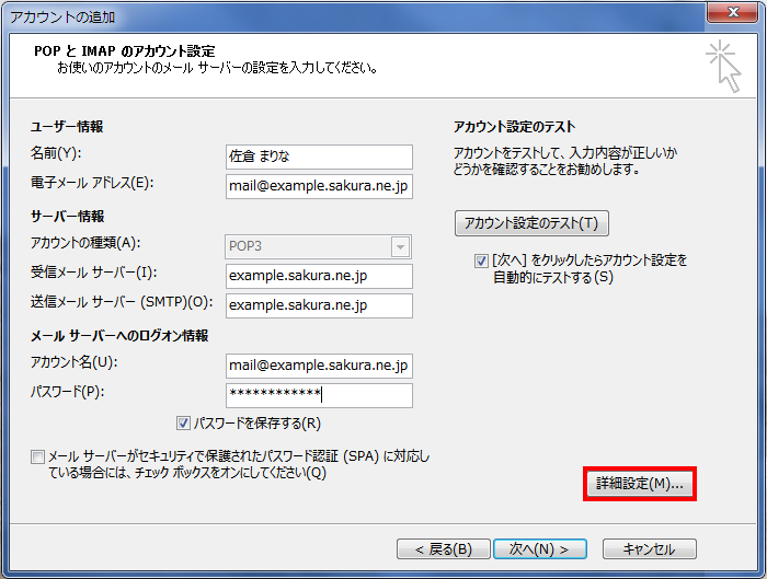3詳細設定を変更する場合は、『 詳細設定(M)… 』をクリックします。
