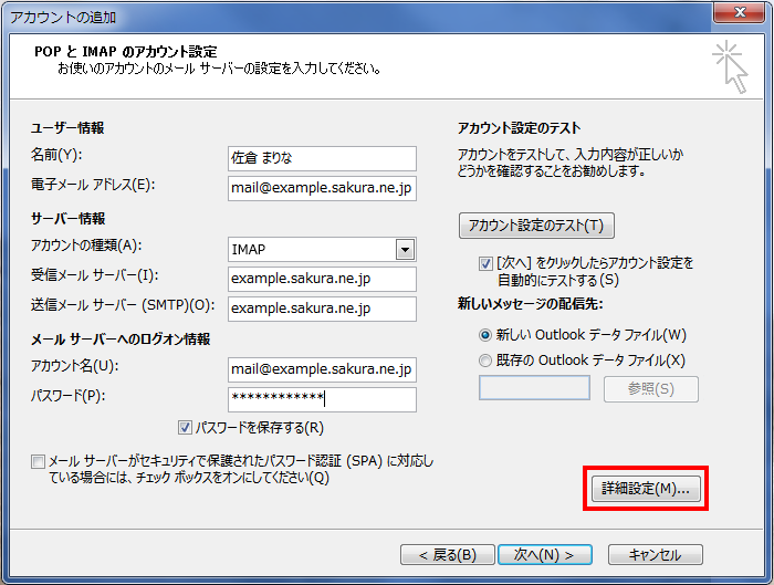 3詳細設定を変更する場合は、『 詳細設定(M)… 』をクリックします。