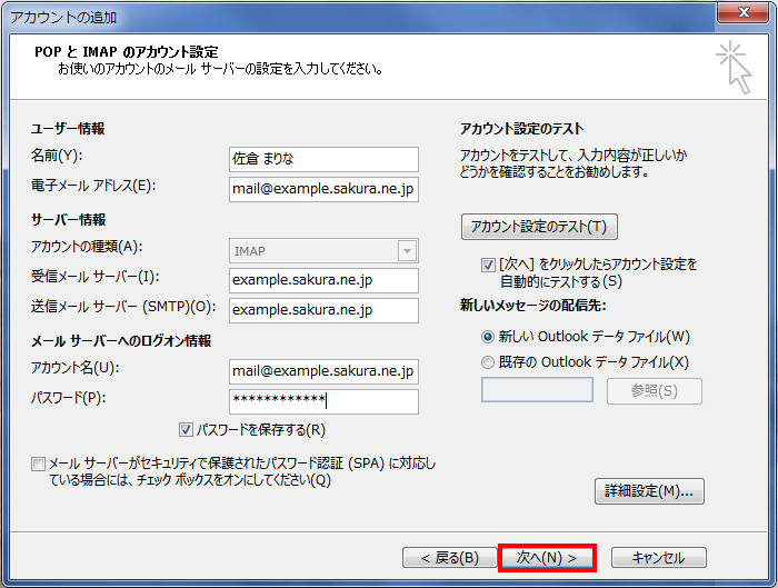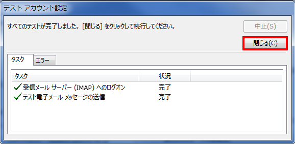 ※エラーが発生した場合はメールソフトで設定、利用時にエラーが表示されるをご確認ください。