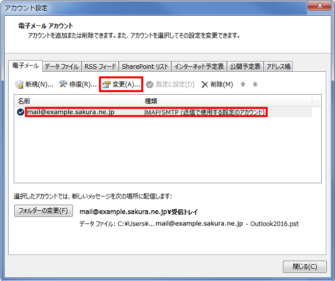 1『 ファイル 』からアカウント設定内の『 アカウント設定(A)… 』をクリックします。