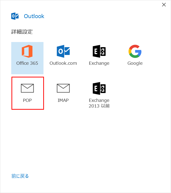2詳細設定の画面が表示されますので『 POP 』をクリックします。