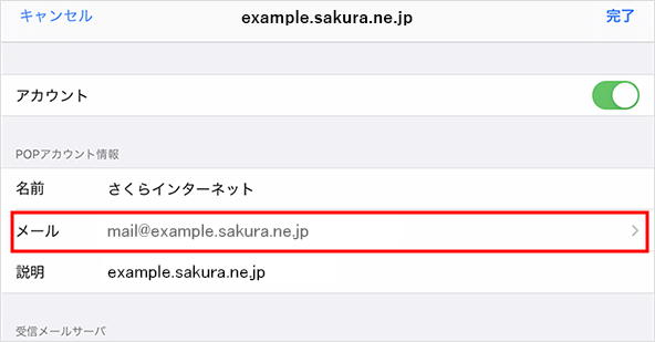 1「 POPアカウント情報 」の中の『 メール 』をタップします。