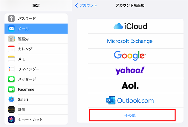 このページでは、iPadに初期からインストールされている、メールソフトの設定方法についてご案内しています。