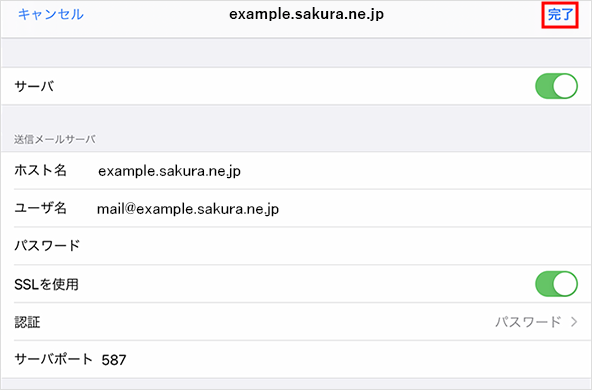 10右上の『 完了 』をタップします。メール設定は以上です。