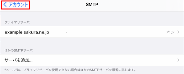 5「 プライマリサーバー 」の中の『 設定したメールサーバー名 』をタップします。