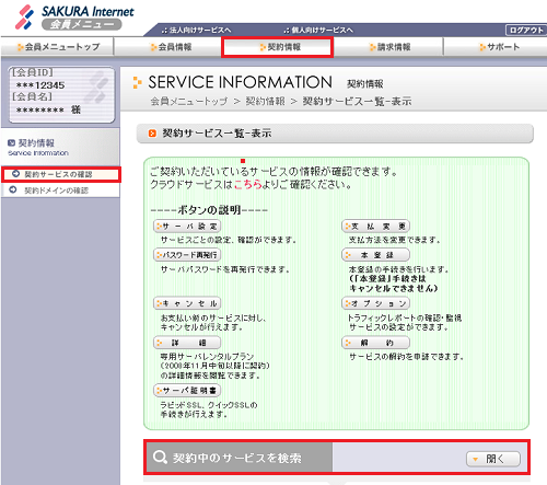 「会員メニュー」においてサービスの検索機能を追加しました(2014年10月)