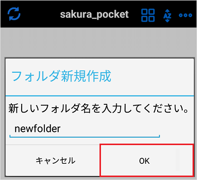 3フォルダ新規作成画面が表示されますので、任意のフォルダ名を入力し『 OK 』をタップします。