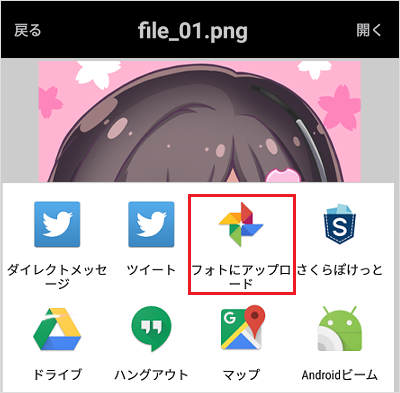 3画面下部にアプリ一覧が表示されます。『 フォトにアップロード 』をタップします。