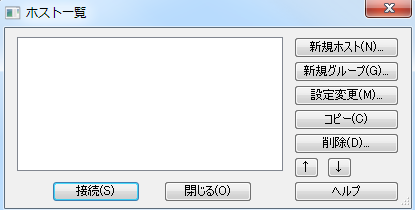 2FFFTPの起動と同時に「 ホスト一覧 」の画面が表示されます。(開いていない場合は、『 接続(F) 』-『 ホストの設定(H) 』で開いてください。)