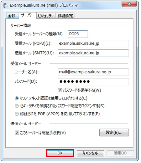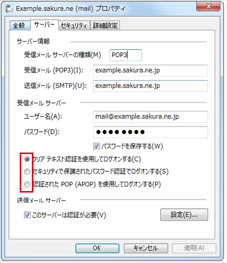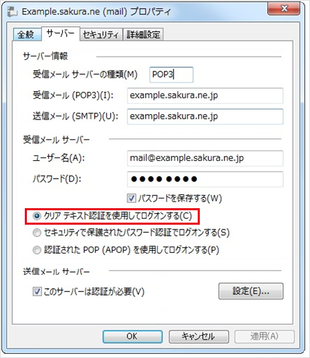 1[ サーバータブ ]の中にある『クリアテキスト認証を使用してログオンする(C)』にチェックを入れます。