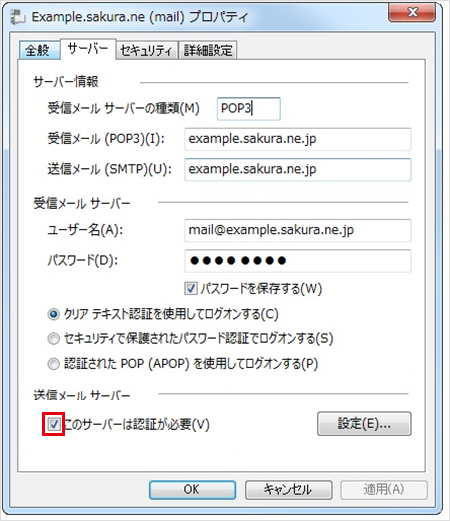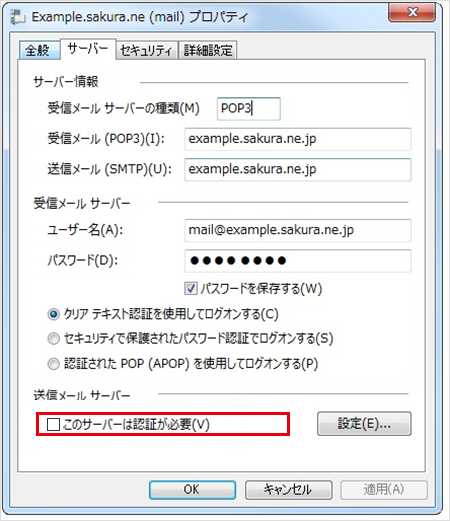 2[サーバータブ]の中にある『このサーバーは認証が必要(V)』を確認します。