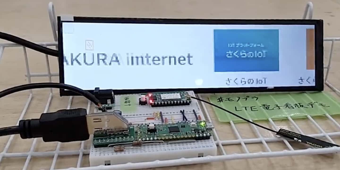 社内有志にて #さくらのモノプラットフォーム の開発キットを使って「LTE 回線で表示更新ができる電子看板のデモ」を作りました!キットは現在も無料配布中です。ぜひお試しください!