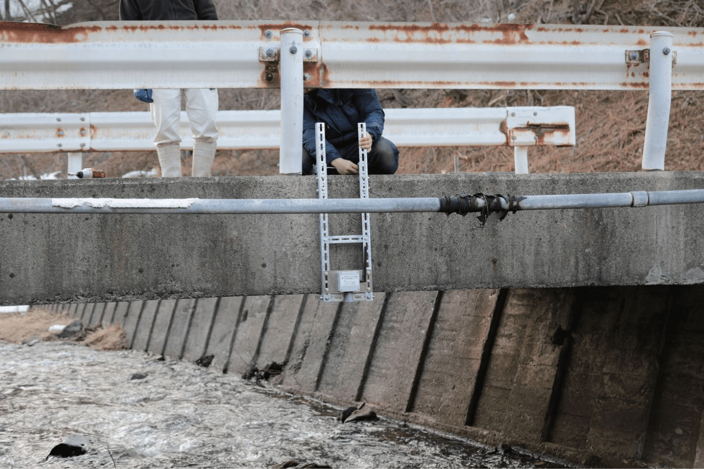 ここからは、実際のデータに基づく推察を交えてお話します。LPWAの水位センサは、下図の通り石狩市北部に位置する浜益区において運用されており、6つの川にそれぞれ水位計測器とゲートウェイ装置が1台ずつ稼働しています。