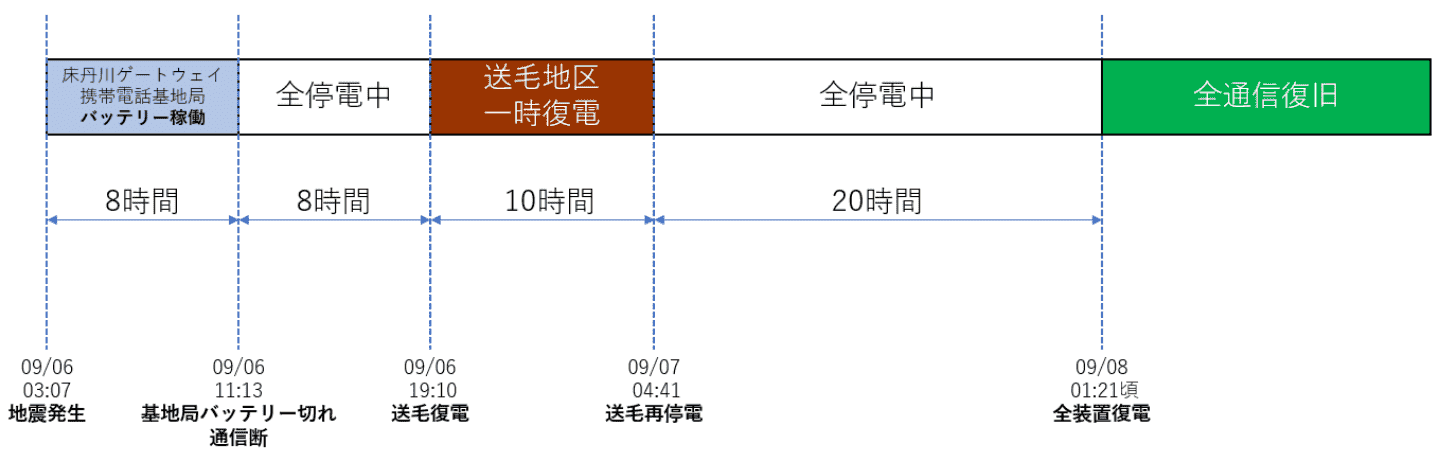 同日9/8 PM14:05、当社のデータセンターも特別高圧の送電が復旧し、約60時間と長きにわたる非常用発電機の運転を終え、完全商用電源による電源供給を行うことができました。