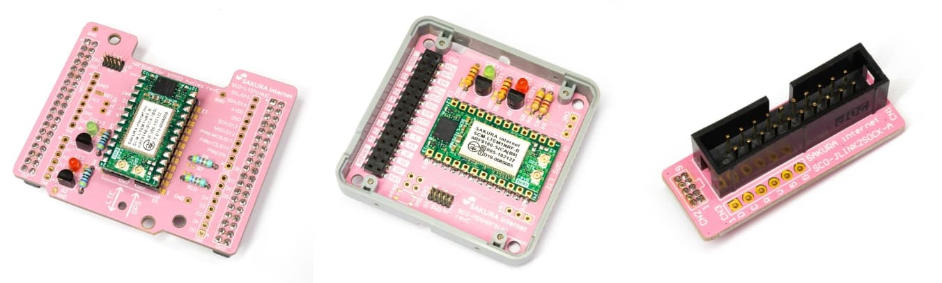 ハードウェアの領域では、IoT開発を始めやすいように、検証利用のための開発キットを無償提供しています。設計情報は公開しており、必要に応じて製造いただくことも可能です。サンプル基板およびアンテナやコネクタがセットになっております。また、さくらのセキュアモバイルコネクトを利用することで、他社製品でも検証を行うことができます。