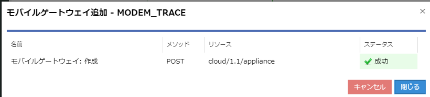 ④モバイルゲートウェイの作成が開始されます。「閉じる」をクリックします。