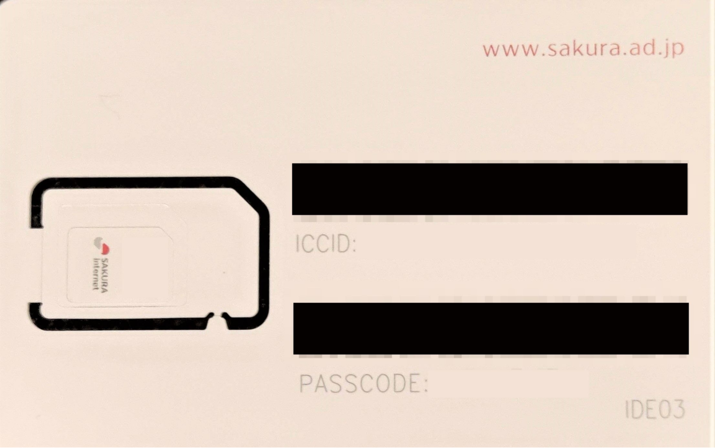 今回使用するSIMカード型の場合、ICCIDおよびPASSCODEはカード裏面に記載されています。バーコードを読み取ることでそれぞれの値を取得することもできます。