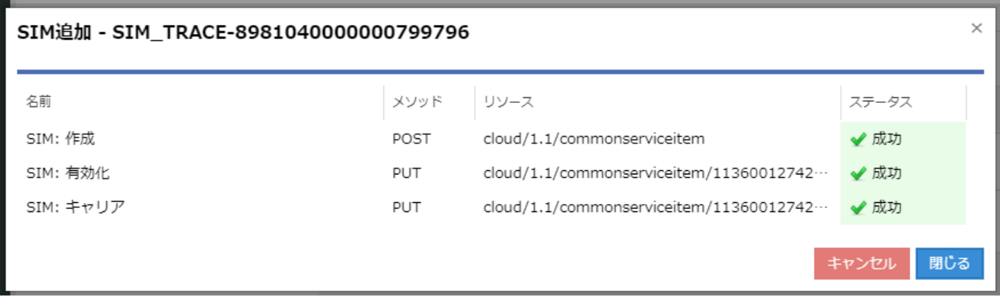③SIMの登録が開始されますので、「閉じる」をクリックします。