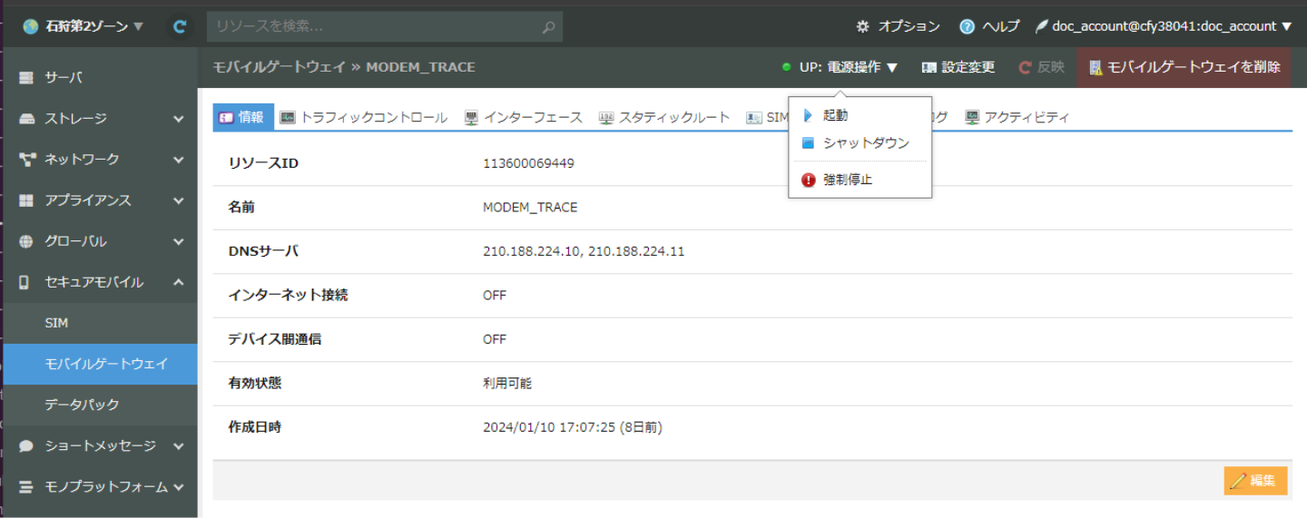 以上がモデムトレースを試すためのセキュアモバイルコネクト評価用クラウド環境構築例となります。評価/確認終了後に使用しない時には、安全の為一旦サーバをシャットダウンしておくことをお勧めします。