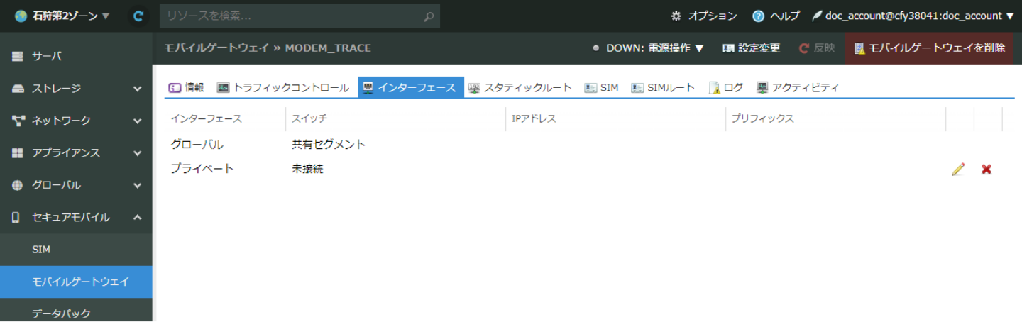 ens4に192.168.0.2のIPアドレスが割り当てられ、SIMのIPアドレス範囲172.16.0.0/16への経路がモバイルゲートウェイのプライベートネットワーク用インターフェイスのIPアドレス192.168.0.1になっていることを確認してください。