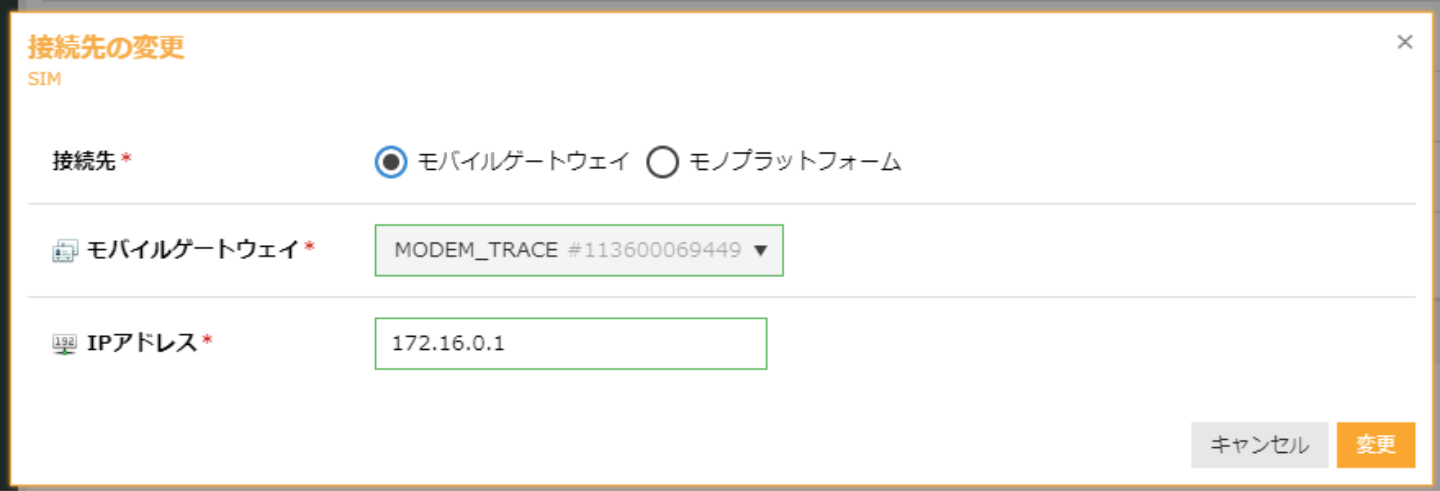 ルート情報としてSIMのIPアドレス範囲の172.16.0.1/16は、モバイルゲートウェイのプライベートインターフェイスである192.168.0.1経由での送信を設定しています。