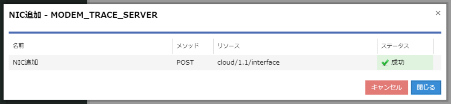 NICのIPアドレスの表示設定処理が実行されます。「閉じる」をクリックします。