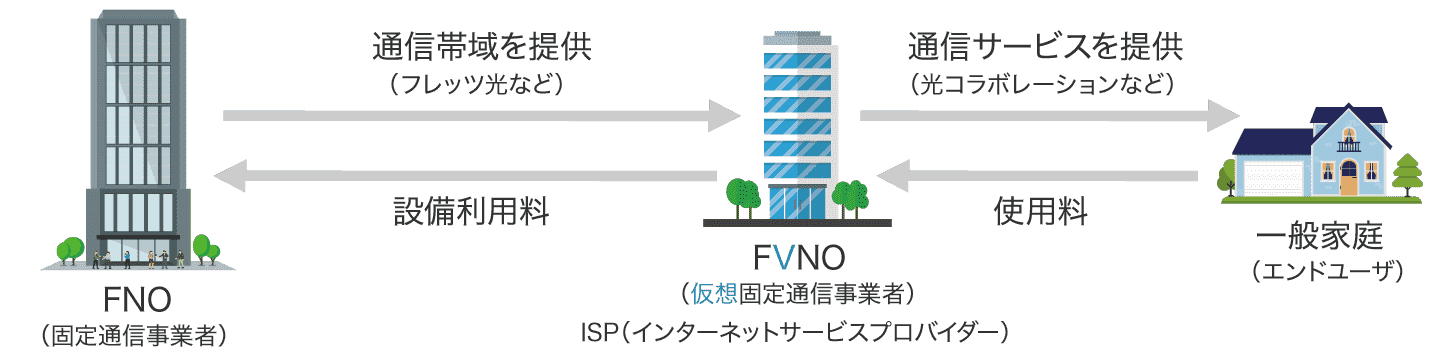 | FVNO | 既存の固定電気通信事業者のネットワークインフラを利用して、利用者に独自の固定通信サービスを提供 |